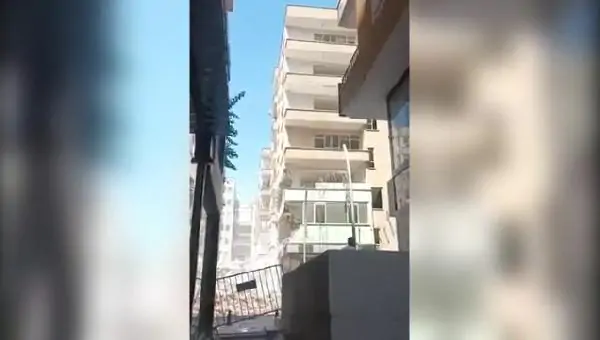 Kahramanmaraş merkezli 6 Şubat’taki depremlerden etkilenen Şanlıurfa’da ağır hasarlı binaların yıkımı sürüyor. Şair Şevket Mahallesi’nde ağır hasar görünce tahliye edilen 7 katlı bina için bugün yıkım çalışması başlatıldı. Bölgede önlem alınmasının ardından iş makineleriyle kolonları zayıflatılan bina, bir süre sonra büyük bir gürültüyle yıkıldı. Ortalığın toz bulutuyla kaplandığı yıkım, cep telefonu kamerasına yansıdı.