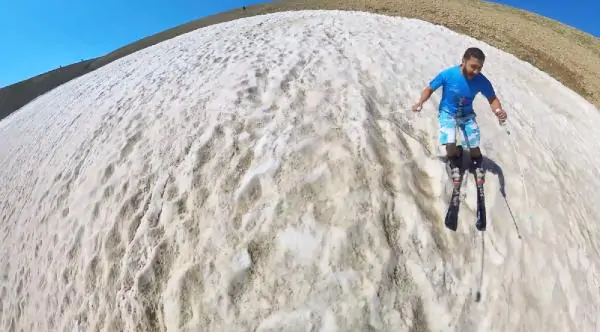 Muzaffer KOŞAN/ERZİNCAN, (DHA)- HAVA sıcaklığının gölgede 40 dereceyi bulduğu Erzincan’da, kayak antrenörü Canser Atila, 3 bin 250 rakımlı Ergan Dağı’nda kayak yaptı. Atila, bölgede 12 ay kar bulunduğunu belirterek, “Ağustos ayında, bunaltan sıcaklarda kayak keyfi muhteşem” dedi.