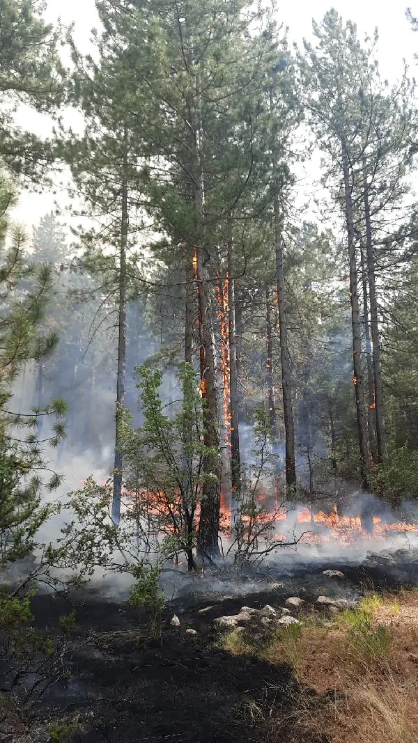 Antalya’nın Akseki ilçesindeki orman yangınına, havadan ve karadan müdahale sürüyor. 6 helikopter, 5 uçak, 25 arazöz, 8 su tankeri, 8 ilk müdahale aracı ve çok sayıda yer ekibinin müdahale ettiği yangının, büyüme eğiliminde olduğu kaydedildi. Havanın kararması ile söndürme çalışmalarına karadan devam edileceği de bildirildi. (DHA)