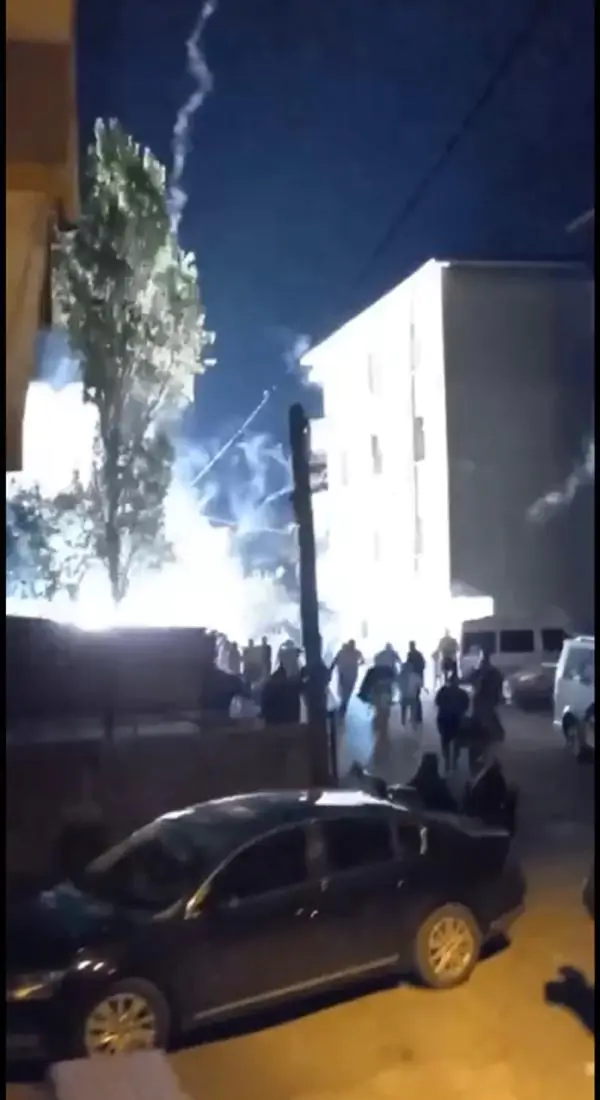 Ataşehir Yeni Sahra’da asker eğlencesi sırasında kullanılacak havai fişek bataryası yanlışlıkla devrildi. Havai fişeklerin patlamasıyla birlikte eğlenceye katılanlar sokakta koşarak kaçmaya başladı. Bir kişi, o anları gülerek cep telefonu kamerasıyla kaydetti.