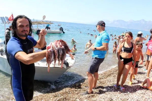 Kızıldeniz’de ortaya çıkan, Süveyş Kanalı’nın açılması ile Akdeniz’e ulaşan aslan balıklarının popülasyonu, son yıllarda denizlerdeki ısınmanın da etkisiyle arttı. İstilacı türler arasında yer alan aslan balıkları Akdeniz’deki türler ile deniz ekosistemine zarar vermeye başlayınca; türle mücadele çalışması yapıldı. Bu kapsamda, Antalya Büyükşehir Belediyesi Deniz ve Kıyı Yönetimi Şube Müdürlüğü’nce bu yıl 3’üncü kez Konyaaltı Sahili’nde ‘Aslan Balığı Avcılık Yarışması’ düzenlendi. Yarışmaya, tekne kaptanı, kovacı ve avcıdan oluşan 3’er kişilik 8 takımdan oluşan 24 kişi, katıldı. Denize açılan ve 4 saat boyunca avlanan takımlar, 15 kilo aslan balığı yakaladı.