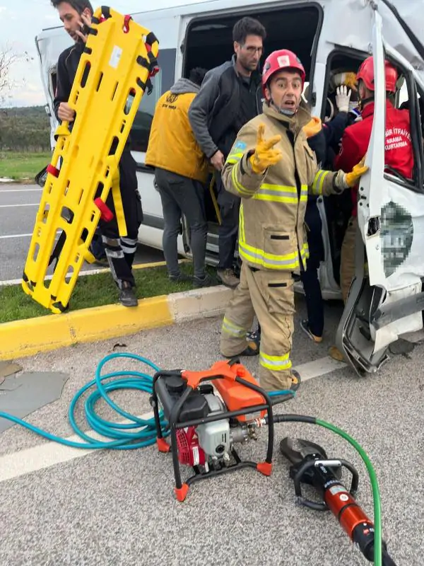 Kaza, saat 19.00 sıralarında Ayvalık- İzmir karayolunda meydana geldi. Enis K. (42) yönetimindeki fabrika işçilerinin taşındığı 10 AGE 782 plakalı servis minibüsü, Ayvalık istikametine dönmek isterken Abdullah A.’nın kullandığı 34 HPP 024 plakalı TIR ile çarpıştı. Kazada, minibüs sürücüsü Enis K. ile minibüste bulunan Derya Küçük (24), Şafak Akbulut (27), Yasemin Açıkalınlı (32), Semanur Aktan (33), Sezai Aydoğan (37), Gülay Mehder (40), Selcen Arıkan (40) ve Nilüfer Rüzgar (49), yaralandı. İhbar üzerine kaza yerine jandarma, itfaiye ve sağlık ekipleri sevk edildi. İtfaiye ekiplerince minibüsten çıkarılan yaralılar, sağlık ekiplerinin kaza yerindeki ilk müdahalesinin ardından Ayvalık, Burhaniye ve Edremit Devlet hastanelerine kaldırıldı. Yaralılardan minibüs sürücüsü Enis K. ile Derya Küçük ve Şafak Akbulut’un hayati tehlikesinin bulunduğu öğrenildi.
