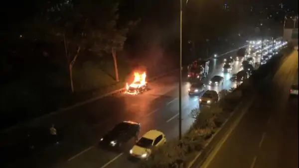 Bağcılar, TEM Otoyolu’nda Cumartesi gecesi, bir otomobilde bilinmeyen nedenle yangın çıktı. Sürücü otomobili yol kenarına çekerek aracı terk etti. Alevler kısa sürede otomobilin tamamını sardı. İhbar üzerine olay yerine itfaiye ekipleri sevk edildi. Ekiplerin müdahalesiyle otomobilde çıkan yangın söndürüldü. Yangın nedeniyle 4 şeritli yolun 2 şeridi bir süre trafiğe kapalı kaldı. Oluşan trafik yoğunluğu, otomobildeki yangının söndürülmesinin ardından normale döndü. Otomobilin alev alev yandığı anlar ve itfaiye ekiplerinin çalışması cep telefonu kamerasına yansıdı. (DHA)