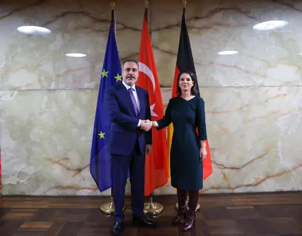 ALMANYA, (DHA)- Dışişleri Bakanı Hakan Fidan, ‘AB Genişlemesi ve Reformu’ konulu Dışişleri Bakanları Toplantısı’na katılmak üzere geldiği Almanya’nın başkenti Berlin’de Almanya Dışişleri Bakanı Annalena Baerbock ve Ukrayna Dışişleri Bakanı Dmytro Kuleba ile bir araya geldi.