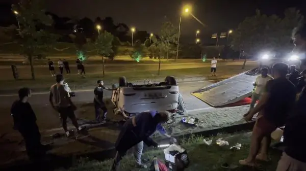 Kaza, 00.30 sıralarında Yeni Riva Yolu Kavacık mevkinde meydana geldi. Polenezköy Riva istikametine ilerleyen B.Ç. idaresindeki 34 FKV 285 plakalı otomobil, sürücüsünün kontrolünden çıkarak Halil Ulukurt Tüneli çıkışındaki yol ayrımında bulunan demir bariyerlere çarparak takla attı. Kaza sonrası otomobilde sıkışan sürücü B.Ç. ile yanında bulunan H.V.Y. çevredeki vatandaşların yardımıyla kurtarıldı. İhbar üzerine kaza yerine sağlık ve polis ekipleri sevk edildi. Sağlık ekipleri yaralıları olay yerindeki müdahalenin ardından ambulanslarla hastaneye sevk ederken, hayati tehlikelerinin olmadığı öğrenildi.