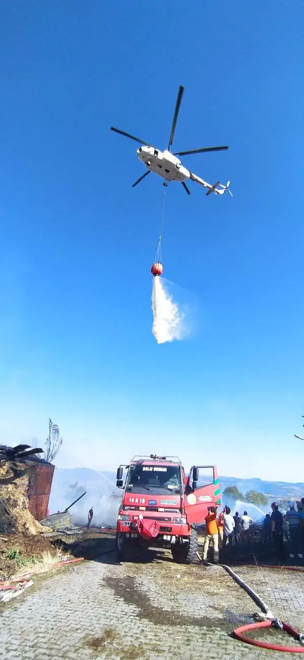 Mutlu YUCA/KIBRISÇIK(Bolu),(DHA)-BOLU’nun Kıbrısçık ilçesinde çıkıp, 2 saatte kontrol altına alınan yangında, 1 yazlık ev, 1 metruk bina, 3 samanlık, 1 ardiye ve 1 odunluk yandı.