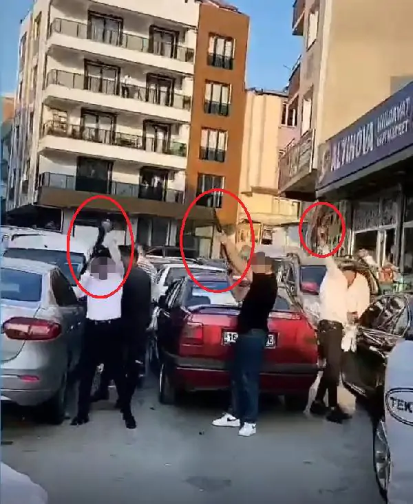 Sosyal medyada paylaşılan görüntülerde; havaya ateş açılırken, sokakta bulunan çocukların korkarak elleri ile kulaklarını kapatıp, otomobillerin arkasına saklanması dikkat çekti.