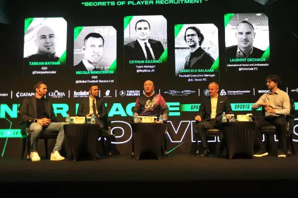 Tarkan Batgün’ün moderatörlüğünde Global Football Service Ltd Üst Yöneticisi Nicola İnnocentin, Al Nassr FC Sportif Direktörü Marcelo Salazar, Omonia FC Scoutu Laurent Dechaux, Beşiktaş Eski Sportif Direktörü Ceyhun Kazancı, ‘Oyuncu Alımının Sırları’ başlıklı panelde buluştular. Oturumda oyunculara imza attırmadan önce taraftar, ülke kültürü ve kulübün kimliğine uyumun öncelenmesi başarının anahtarı olduğu ifade edildi.