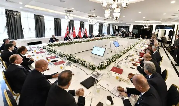 Cumhurbaşkanı Yardımcısı Cevdet Yılmaz, 4 saat süren toplantının ardından açıklama yaptı. Yılmaz, temel hedeflerin istikrar içinde büyümek ve kalkınmak olduğunu vurgulayarak, “Kamusuyla, özel sektörüyle temel hedefimiz istikrar içinde büyümek, kalkınmak ve sosyal refahı artırmak. Bu genel hedefimiz. Bu anlamda bir hedef birliği içindeyiz. Büyümeyi istikrarlı bir şekilde ve istikrarlı bir ortamda gerçekleştirmek önemli. Burada da üzerinde en fazla durulan konulardan biri serbest piyasanın ve rekabetin esas olduğu. Bu çerçevede finansal istikrar ve fiyat istikrarının öneminin altı çizildi. Enflasyonla mücadele, fiyat istikrarını sağlamak sadece ekonomik anlamda değil sosyal anlamda da son derece kıymetli. Dolayısıyla enflasyonla mücadele edilmesi gerektiği, bunun da sabırla yapılması gerektiği, ısrarla yapılması gerektiği noktasında genel bir fikir birliği olduğunu ifade edebilirim” dedi.