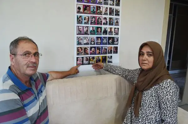 Kızları ve torunlarının bulunmasını isteyen çiftin evinin duvarında rezidansta halen ulaşılamayan kişilerin fotoğraflarının bulunduğu afiş yer alıyor.
