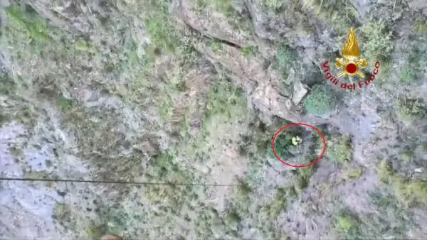 Beril SÖNMEZ, (DHA) – İtalya itfaiyesi, Sicilya’da dağlık bölgedeki sarp yamaçta mahsur kalan dağcıyı helikopterle kurtardı. O anlar itfaiyenin kamerasına yansıdı.