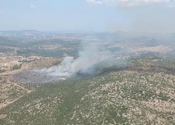 Ertuğrul KOÇAK/ İZMİR, (DHA)- İZMİR’in Aliağa ilçesinde, makilikte yangın çıktı. Bölgeye sevk edilen ekipler alevlere müdahale ediyor.