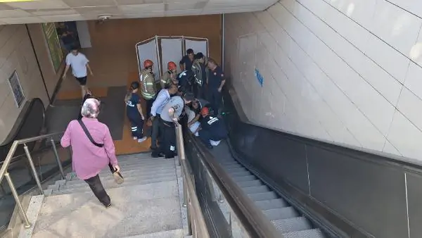 Oğuzhan UYSAL- Murat SOLAK / İSTANBUL, (DHA)- KARTAL Metro İstasyonunu’nda dengesini kaybeden Bayram Demirci (58), düşerek yürüyen merdivene sıkıştı. Kolundan ve sırtından yaralanan Demirci, itfaiye ve sağlık ekipleri tarafından kurtarıldı.