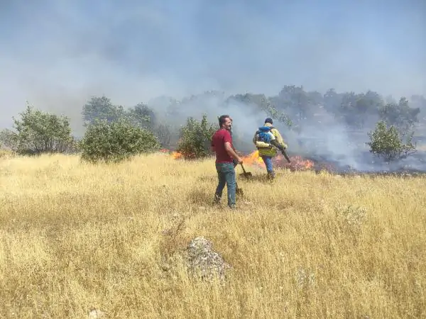 Emrullah KARAKAŞ/ MAZIDAĞI (Mardin), (DHA)- MARDİN’in Mazıdağı ilçesinde çıkan orman yangın itfaiye ekiplerinin 3 saatlik çalışmasıyla kontrol altına alındı. Yangında 10 hektar alan tahrip oldu.