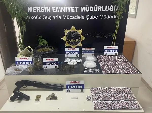 Mersin’de ‘torbacı’ olarak tabir edilen uyuşturucu satıcılarına yönelik operasyonda haklarında gözaltı kararı verilen 35 şüpheliden 28’i yakalanıp, yakalandı. Adreslerdeki aramada, 2,1 kilogram skunk, 408 gram esrar, 490 gram metamfetamin, 36 gram kokain, 1242 adet sentetik hap, 4 kök Hint keneviri, 2 ruhsatsız tabanca, 29 adet 9 milimetre tabanca mermisi, 1 pompalı tüfek ele geçirildi. Şüpheliler sorgulanmak üzere Emniyet Müdürlüğü’ne getirilirken, operasyonla ilgili soruşturmanın çok yönlü olarak sürdürüldüğü bildirildi. (DHA)