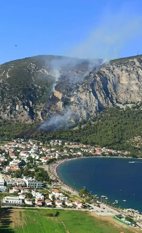 Muğla’nın Milas ilçesinde, saat 15.30’da çıkan orman yangınına 6 helikopter, 3 uçak, 15 arazöz, 2 dozer ve çok sayıda orman işçisi ile müdahale edildi. Ekiplerin havadan ve karadan müdahalesiyle yangın 3 saatte kısmen kontrol altına alındı. (DHA)