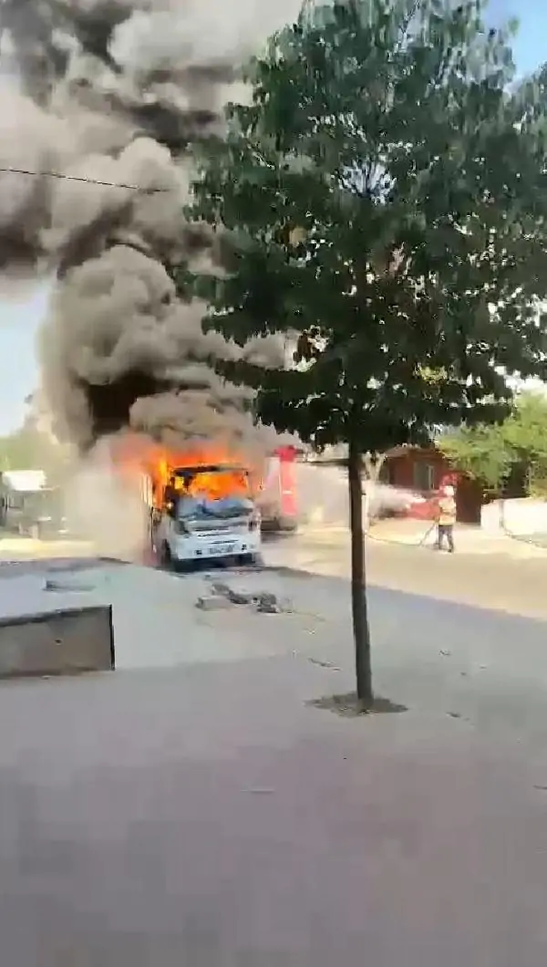 Yangın, 17.30 sıralarında Ahmet Yesevi Mahallesi, Gülhane Caddesi’nde çıktı. İddiaya göre; Gülhane Caddesi üzerinde ilerleyen 34 LOD 956 plakalı servis minibüsünün motor kısmından dumanlar çıkmaya başladı. Durumu fark eden minibüs şoförü aracı yol kenarına çekerek araçtan indi. Çevrede bulunan vatandaşlar yangın tüpü ile müdahale etmeye çalıştı. Kısa sürede büyüyen alevler tüm minibüsü sardı. İhbar üzerine olay yerine gelen itfaiye ekiplerinin yaklaşık bir saat süren çalışmasının ardından yangın söndürüldü. Çıkan yangında ölen yada yaralanan olmazken minibüs kullanılamaz hale geldi. Yangın nedeniyle cadde trafiğe kapatıldı. Yangına müdahale edenlerden Arif Görel, “Abimle dükkanda çalışıyorduk. Birisi geldi yangın tüpü sordu, biz yangın tüpü ile müdahale ettik ama söndüremedik. Alevler yükseldi baya büyük yangın oldu. Çok şükür kimse yaralanmadı. İtfaiye ekipleri söndürdü” diyerek yaşananları anlattı. (DHA)