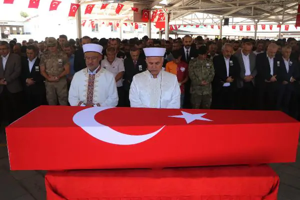 Şehit Özdemir’in cenazesi, öğle vakti Gaziantep İl Müftüsü Hüseyin Hazırlar’ın kıldırdığı namazın ardından asri mezarlıktaki Yeşilkent Şehitliği’nde toprağa verildi. (DHA)