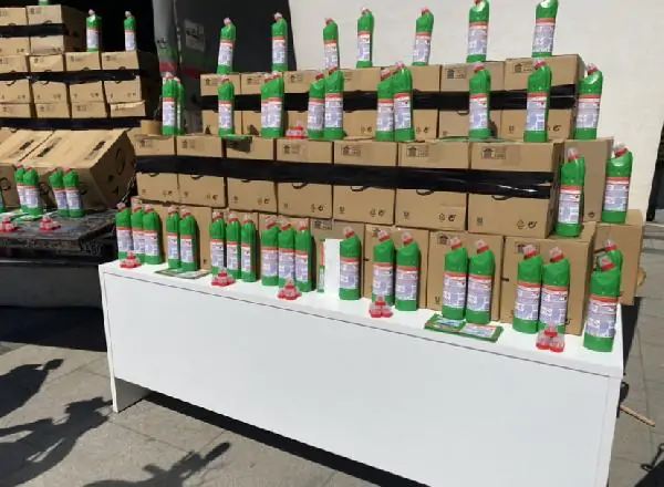 İstanbul Emniyet Müdürlüğü Güvenlik Şube Müdürlüğü ekipleri Tuzla’da temizlik ürünü imal edildiği ve piyasaya sürülmek üzere paketlendiğini tespit etti. Ekipler 5 Ağustos tarihinde belirlenen adrese düzenlediği operasyonda, 80 bin 000 adet etiket, bin adet şişe kapağı, 500 adet doluma hazır boş şişe, 10 bin 920 adet dolumu tamamlanmış çamaşır suyu olmak üzere toplamda 92 bin 420 temizlik ürünü ve bileşenine el konulmuştur. Konuyla ilgili olarak 1 şüpheli yakalandı. Öte yandan operasyon kapsamında yakalanan ürünler İstanbul Emniyet Müdürlüğü Vatan Yerleşkesi’nde sergilendi.